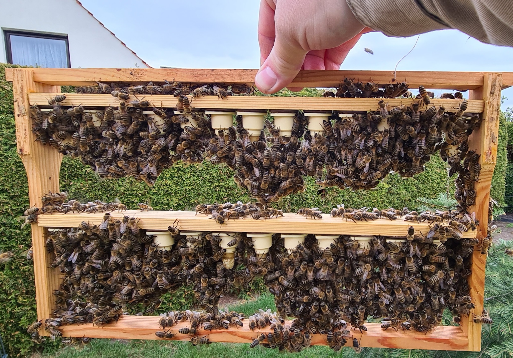 Seit ein paar Jahren züchte ich auch Königinnen. Ich züchte ausschließlich Carnica Bienen. Entweder nutze ich dafür den Zuchtstoff vom Celler Bieneninstitut oder von meinen eigenen Reinzuchtköniginnen. Die Begattung führe ich entweder auf meinem eigenem Begattungsstand oder auf der Belegstelle Torfhaus des Celler Bieneninstituts durch. Die Sanftmütigkeit steht als Zuchtkriterium bei mir im Vordergrunde.